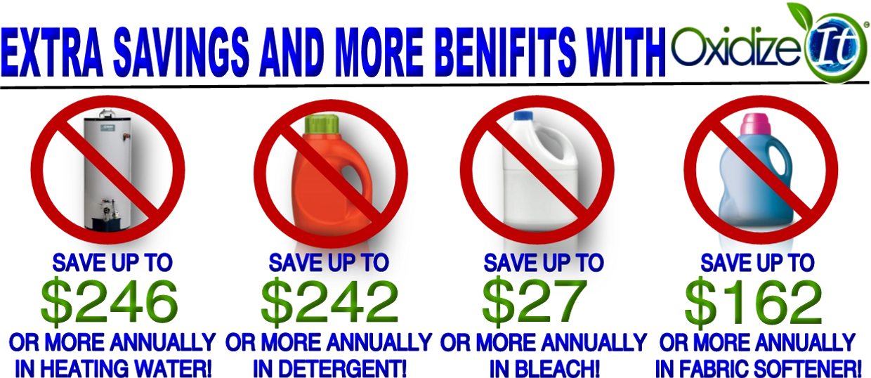 Oxidize It™ uses an advance oxidization system (identical to the systems used by many hospitals and hotel for the last 20 years). It requires no detergent, bleach, or other chemicals to clean soiled clothes normally. No hot water is necessary. Installation is also easy.